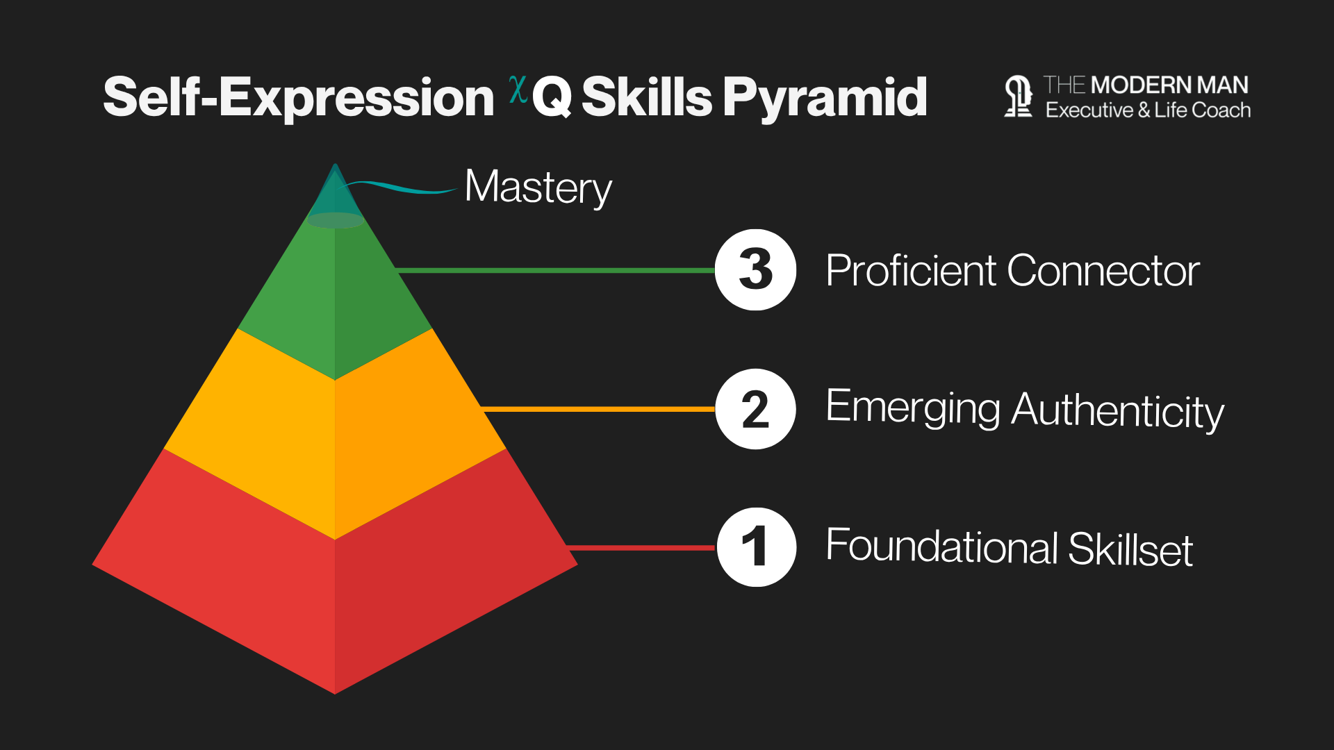 It is the highly learnable, unspoken next step to expressing your full self, both who you are and who you want to become, to create real connection and leave your mark on the world. It builds off emotional intelligence (EQ), but is distinctly different. It’s accessible, complimentary, and looks specifically at expression as a means of connection that deeply resonates, and is learnt through practicing and mastering the 6 unique skills which collectively focus in on the ‘Expression Gap’ experienced by all men at some point.